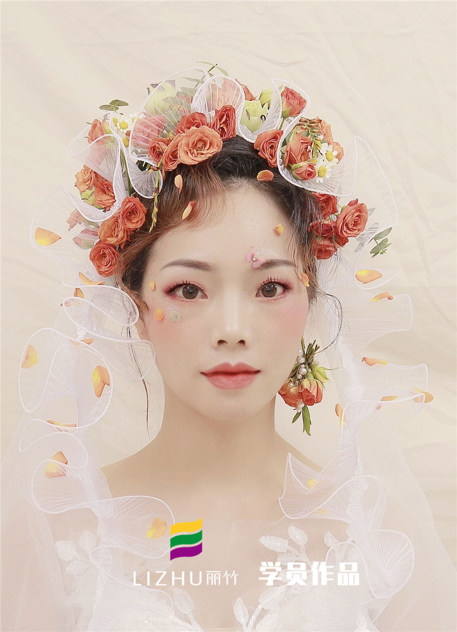 南寧化妝培訓(xùn)學(xué)校分享:新娘時(shí)尚造型,鮮花點(diǎn)綴,,猶如精靈一般,優(yōu)雅溫婉,水靈蘊(yùn)秀,惹人憐愛。讓人一見驚艷,再見傾心!