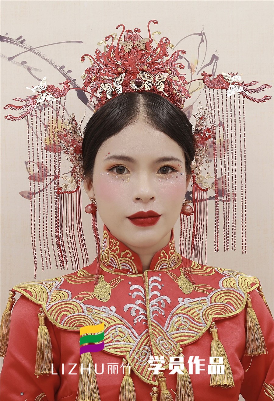南寧化妝培訓(xùn)學(xué)校課堂:“虹裳霞帔步搖冠, 鈿瓔累累佩珊珊。”在人生最幸福的那天,如斯華麗裝扮:纓絡(luò)垂旒,玉帶蟒袍,著百花裥裙,穿大紅繡鞋。一抹濃艷滿身喜慶,一如心中幸福滿溢,又何止美哉!