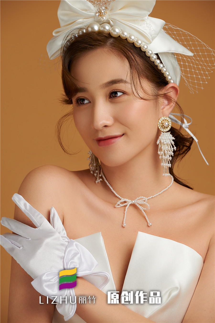 麗竹學校彩妝作品---簡約韓式新娘造型:自然輕薄的妝面似有似無,配上清新靈動的簡約盤發(fā),點綴潔白無暇的珍珠飾品,搭配白色綢緞面料的禮服,凸顯“人淡如菊”的氣質。