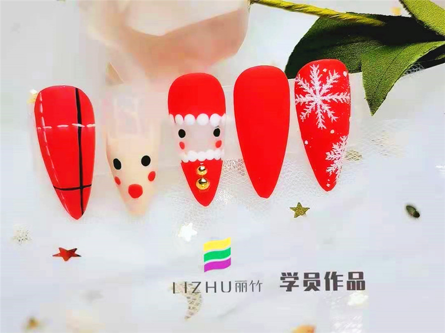 南寧美甲培訓(xùn)學(xué)校分享:“叮叮當(dāng),叮叮當(dāng), 鈴兒響叮當(dāng)”伴隨著歌曲,圣誕節(jié)也即將到來(lái),小仙女們的美甲也是時(shí)候換上一個(gè)與節(jié)日相符的美甲款式了。下面,就看看南寧排行前十美甲學(xué)校(麗竹美甲學(xué)校)學(xué)員們創(chuàng)作的圣誕美甲作品吧!
