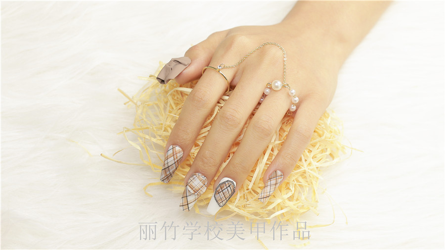 南寧學(xué)美甲多少錢?請看麗竹學(xué)校美甲作品:格紋美甲