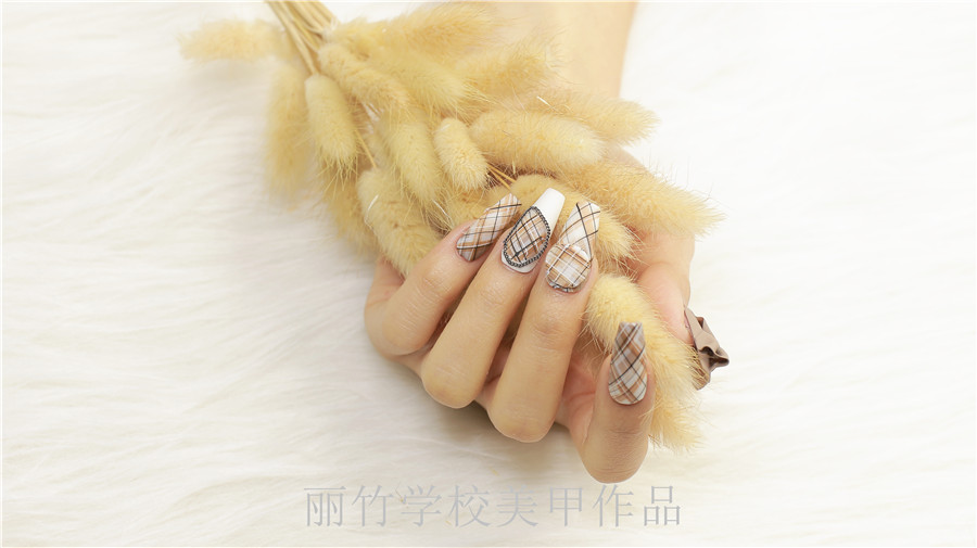 南寧美甲培訓(xùn)學(xué)校哪家好?請看麗竹學(xué)校美甲作品:格紋美甲