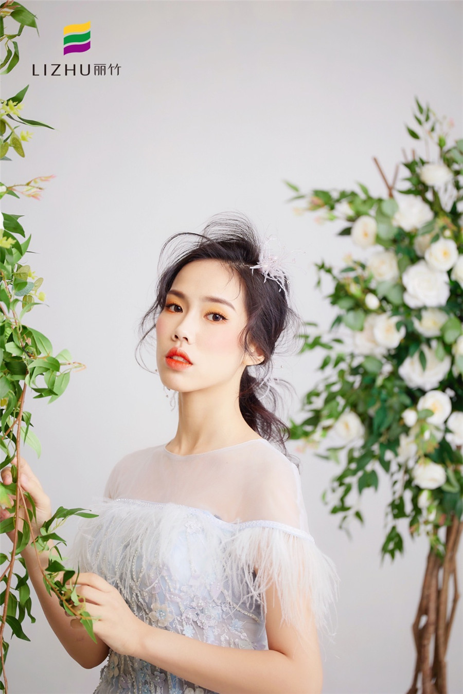 廣西化妝學(xué)校作品(麗竹彩妝學(xué)校):抽絲紋理新娘造型:靈動(dòng)隨意的抽絲盤發(fā),簡(jiǎn)單干凈自然的妝容,優(yōu)雅中散發(fā)恬靜與美好,打造出清新嬌俏的感覺。
