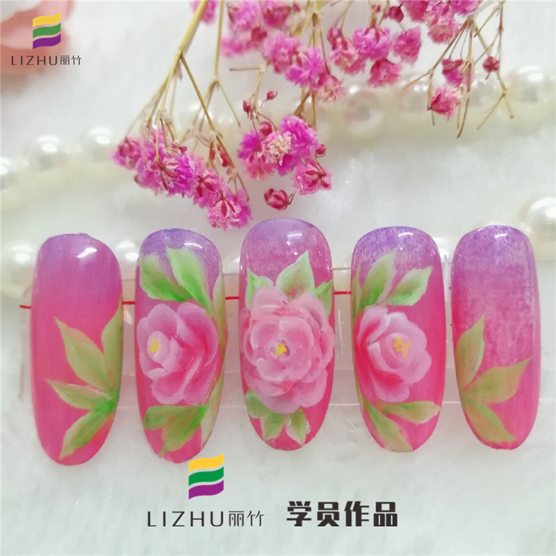 南寧美甲學(xué)校學(xué)員彩繪花朵美甲作品