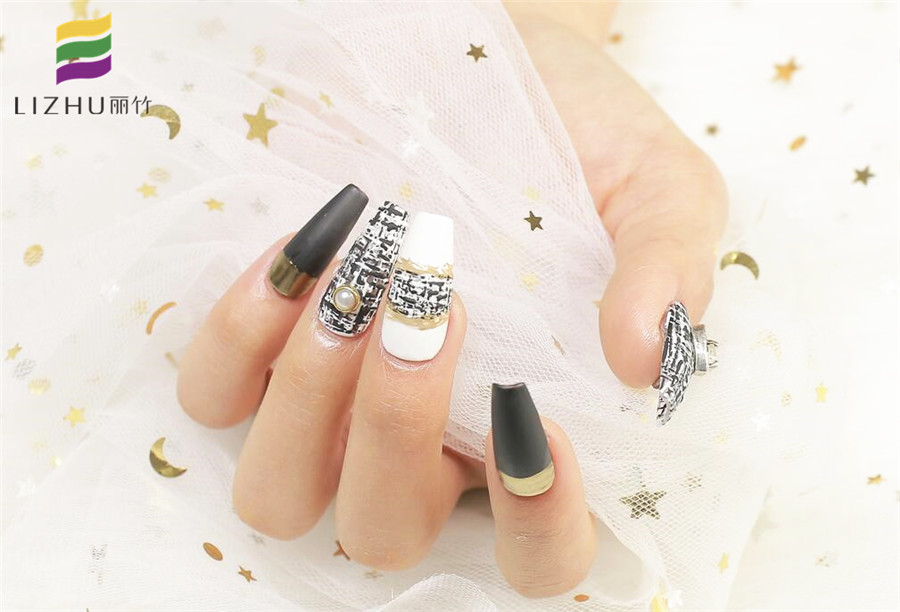 南寧美甲有哪些培訓(xùn)學(xué)校?請看麗竹美甲學(xué)校作品::黑白色塊撞色美甲