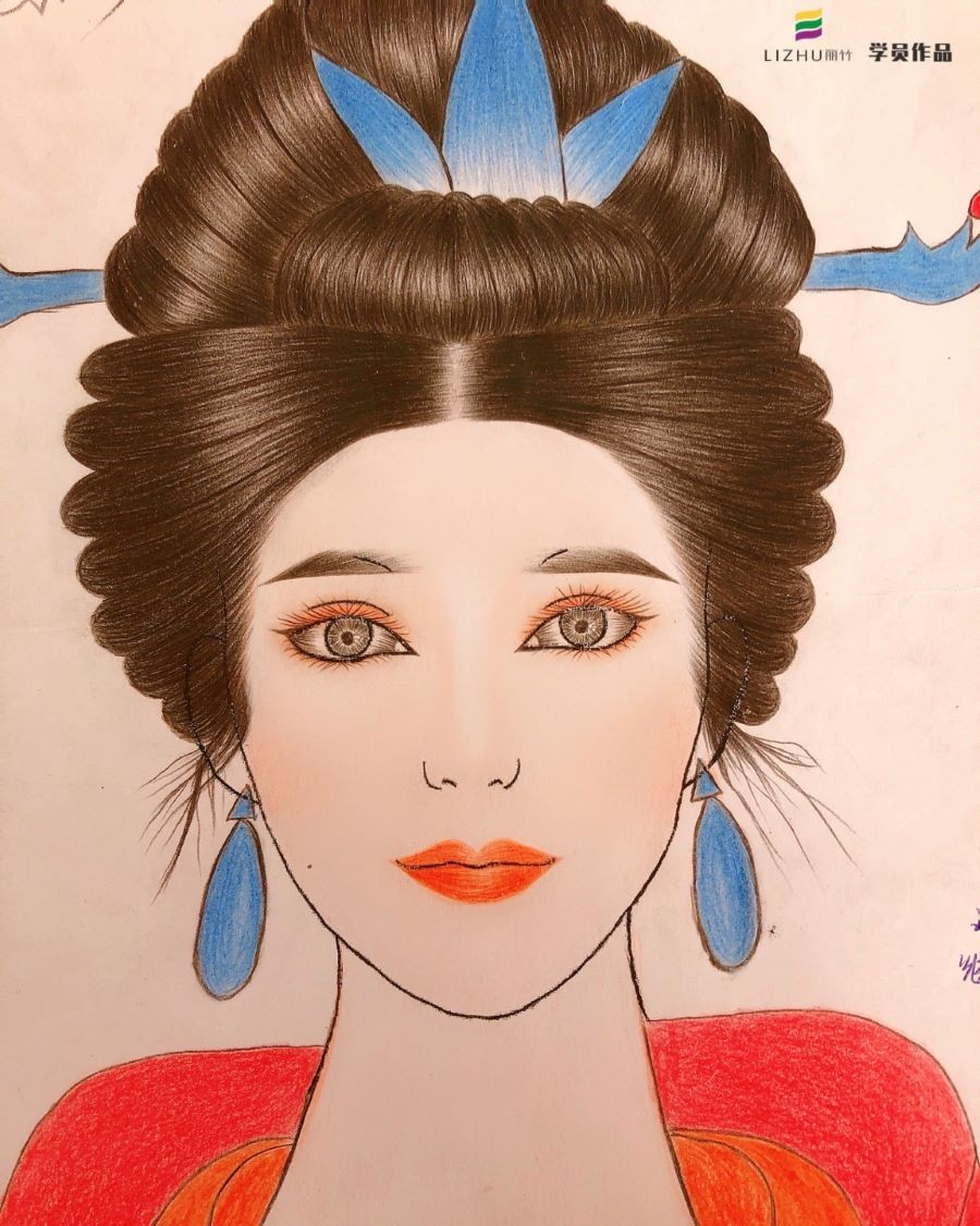 以上就是廣西化妝培訓班學員們的部分作品,在進行真人實操練習前,為了讓學員們可以更好掌握整個妝面以及造型的搭配,紙妝練習是不可缺少的重要學習步驟。