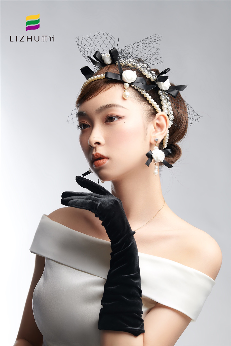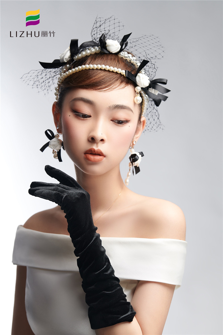 搭配網(wǎng)紗珍珠頭飾更顯優(yōu)雅