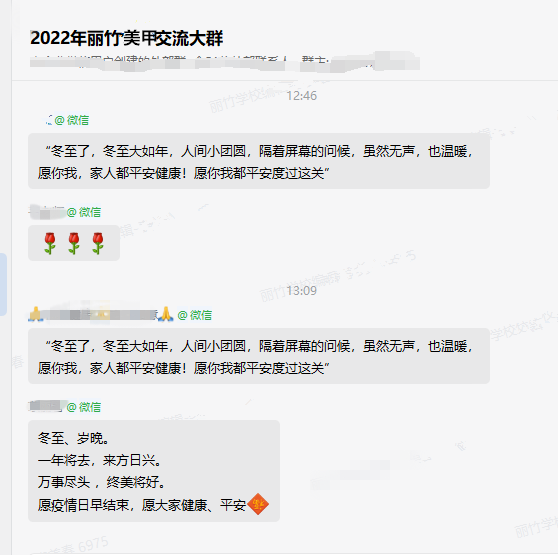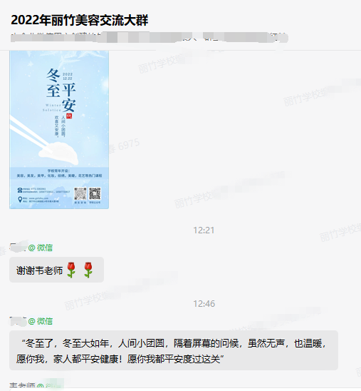 南寧美容美發(fā)學(xué)校、南寧化妝美甲職業(yè)培訓(xùn)分享:寒風(fēng)襲來(lái),陽(yáng)光至。時(shí)光駐足冬至,祝福隨風(fēng)而至。感謝同學(xué)們的冬至祝福