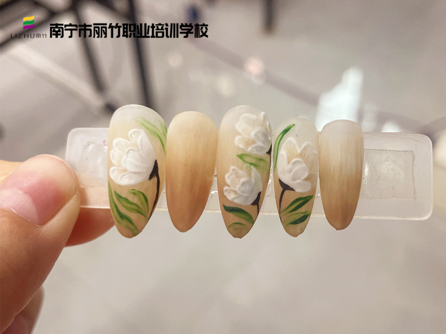 廣西美甲課堂作品、廣西學美甲造型:花,是美甲繪制較為常見的元素之一。特別是百花齊放的春季,更加少不了以花為主題的花朵美甲啦~在今天廣西美甲速成班-麗竹美甲速成班的課堂作業(yè)里,學員們就用學到的技能營造出了一副副春之浪漫感極強的春日手繪美甲作品,一起來欣賞下吧!
