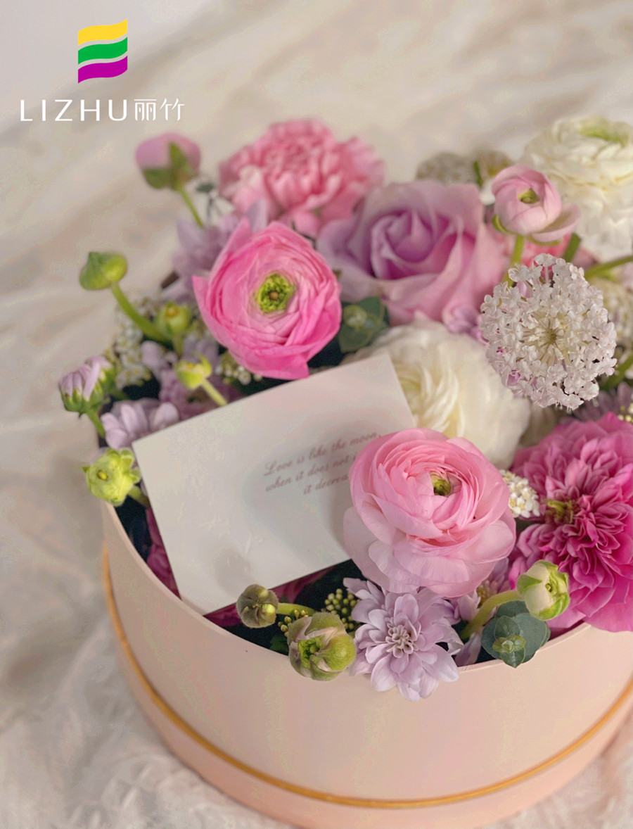 花盒挑選的花材和顏色并不局限于某一個范圍,它可以是多樣化的進(jìn)行搭配。隨意的造型設(shè)計,加上自然的色彩搭配,整個花盒造型不僅顏色清新艷麗,更多了一份浪漫與溫暖。