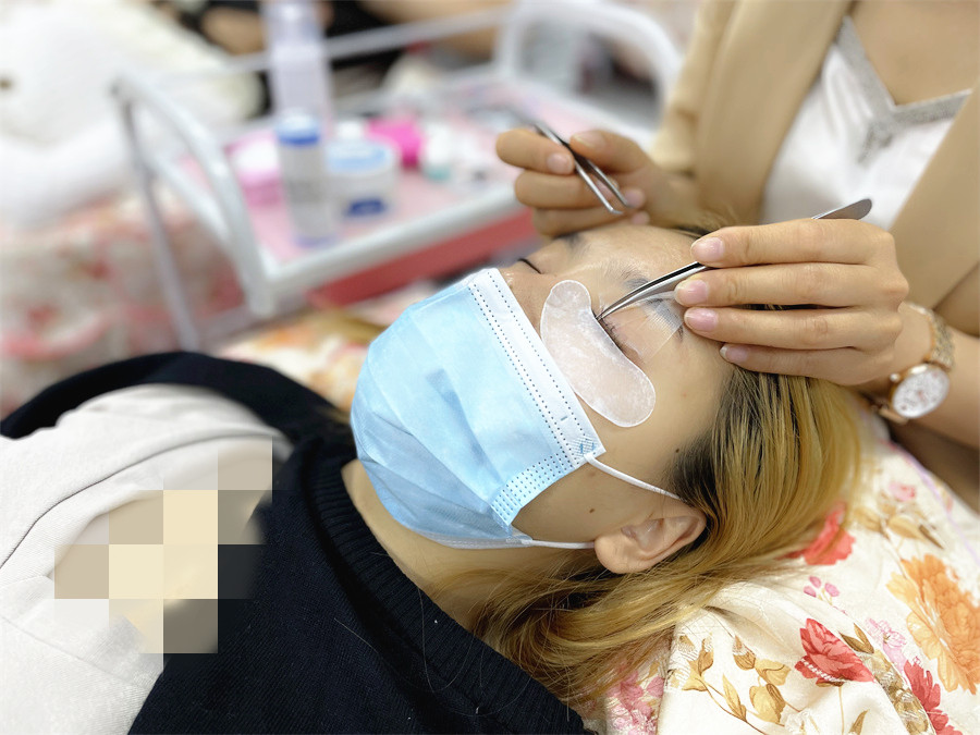 南寧美睫嫁接睫毛培訓(xùn)-麗竹美睫培訓(xùn)班學(xué)員真人實操練習(xí)