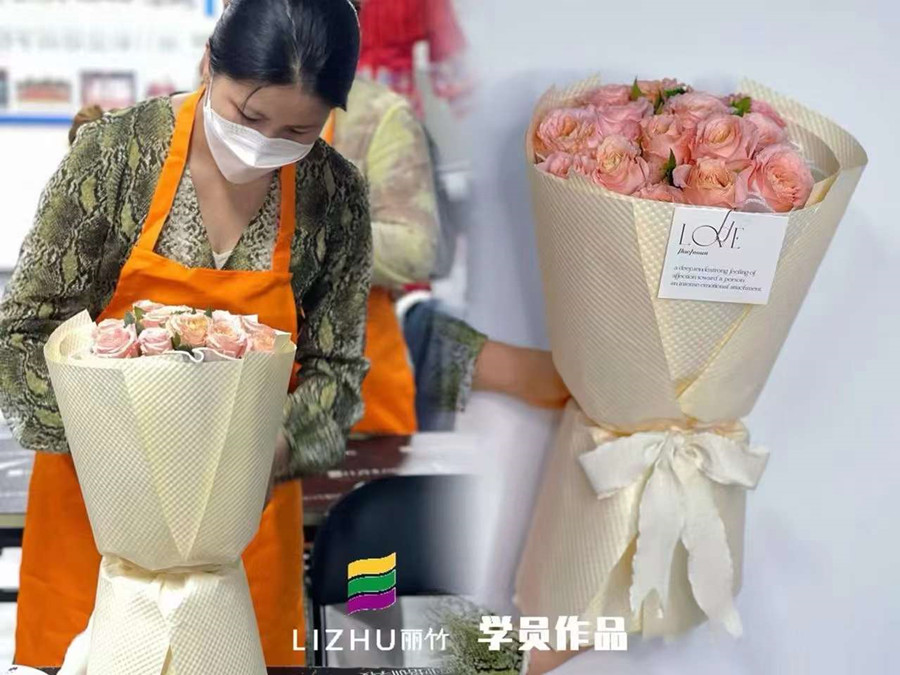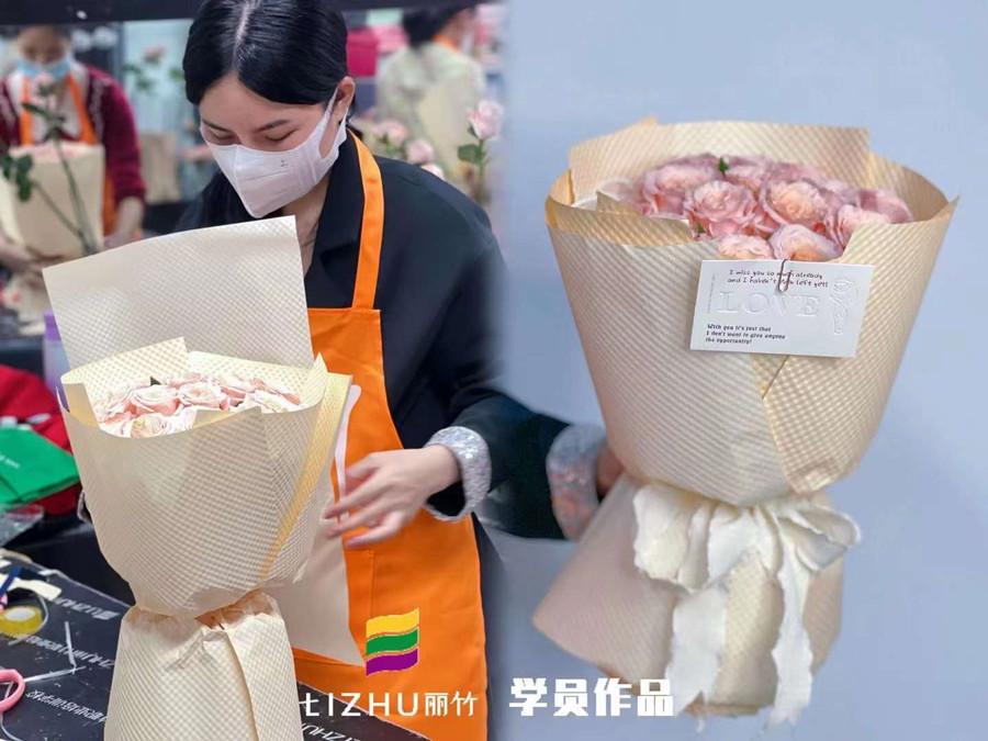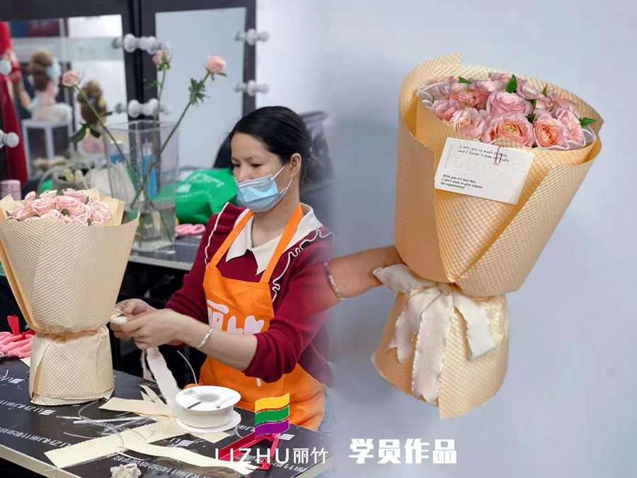 南寧花藝學校推薦---麗竹花藝學校學員-清新圓形大花束(四)