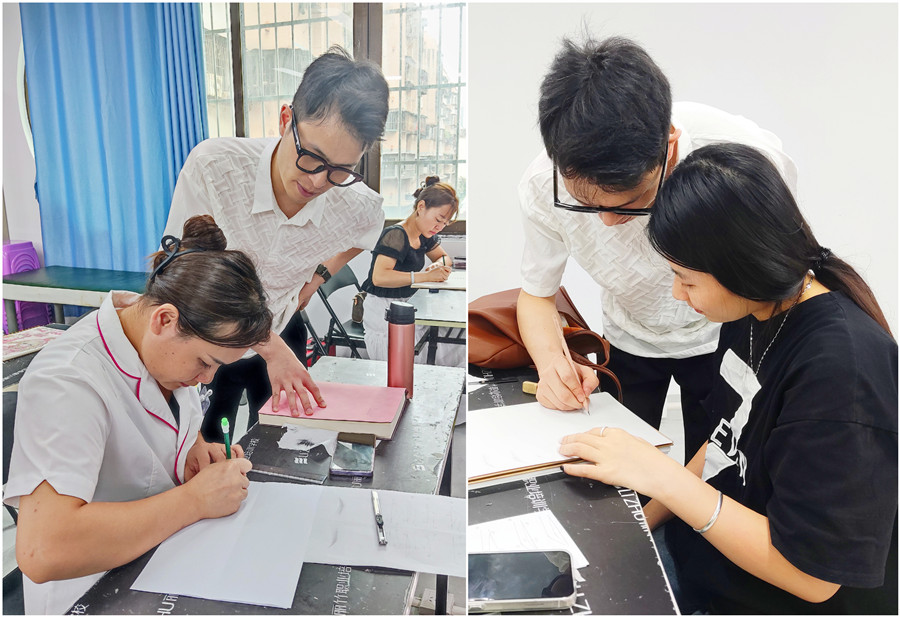 深受學(xué)員們喜愛的紋繡講師杰文老師繼續(xù)擔(dān)任此次課程的主要講師,在為期7天的課程中,杰文老師不僅會(huì)全面教授學(xué)員們了解紋繡的發(fā)展歷程以及市場(chǎng)前景,還會(huì)手把手對(duì)學(xué)員們?cè)谑址ú僮髦械谋∪醐h(huán)節(jié)進(jìn)行一對(duì)一輔導(dǎo),直到學(xué)員們能熟練掌握。