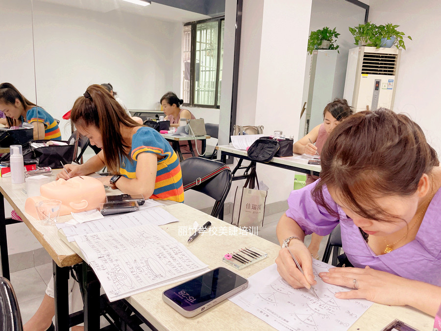 麗竹國(guó)際美睫進(jìn)修班學(xué)員進(jìn)行紙上美睫練習(xí)(一)