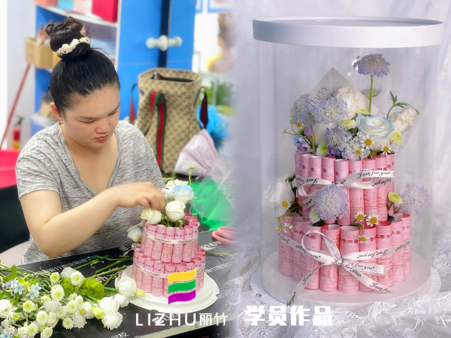 南寧培訓花藝師、南寧花藝培訓機構:將蛋糕和花束相互結(jié)合,制作一款蛋糕花盒作品,如何?南寧花藝學校的同學們就將這種想法付諸行動了,一起去看看她們的蛋糕花盒制作出的花藝作品吧!如果你也想借助花束表達出你的心意,現(xiàn)在就可以通過下面的方式關注麗竹學?;ㄋ噷I(yè),提前約到南寧花藝培訓班去參觀,試聽,體驗插花樂趣,滿意之后在報名吧!