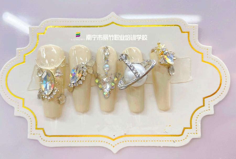 飾品堆鉆美甲,廣西美甲專業(yè)教學學員作品