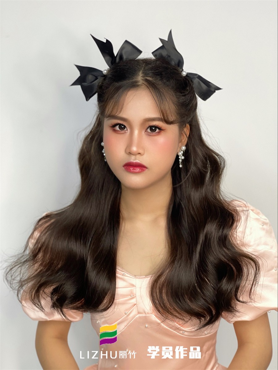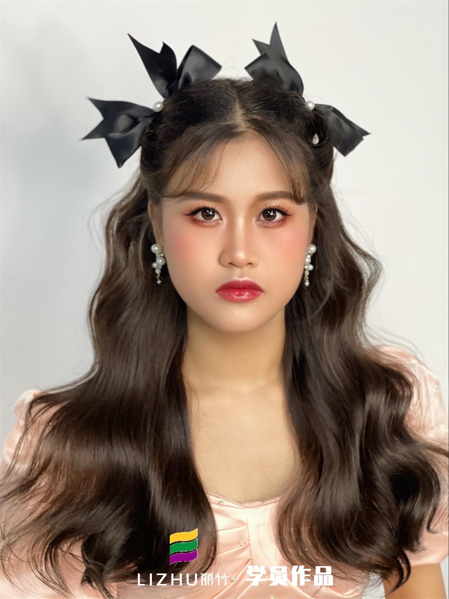廣西寫真培訓,廣西化職業(yè)學校學員寧燕珍作品:在逃公主造型。如果你想當廣西化妝師,想知道廣西化妝培訓哪家實力強?廣西學化妝學校推薦你可以到麗竹化妝學校去先參觀和試聽,親眼感受專業(yè)的實力,滿意之后在報名!