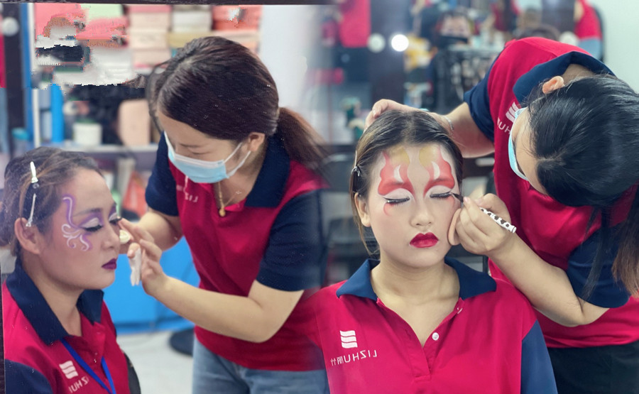 廣西化妝進(jìn)修班同學(xué)正在進(jìn)行創(chuàng)意妝容打造