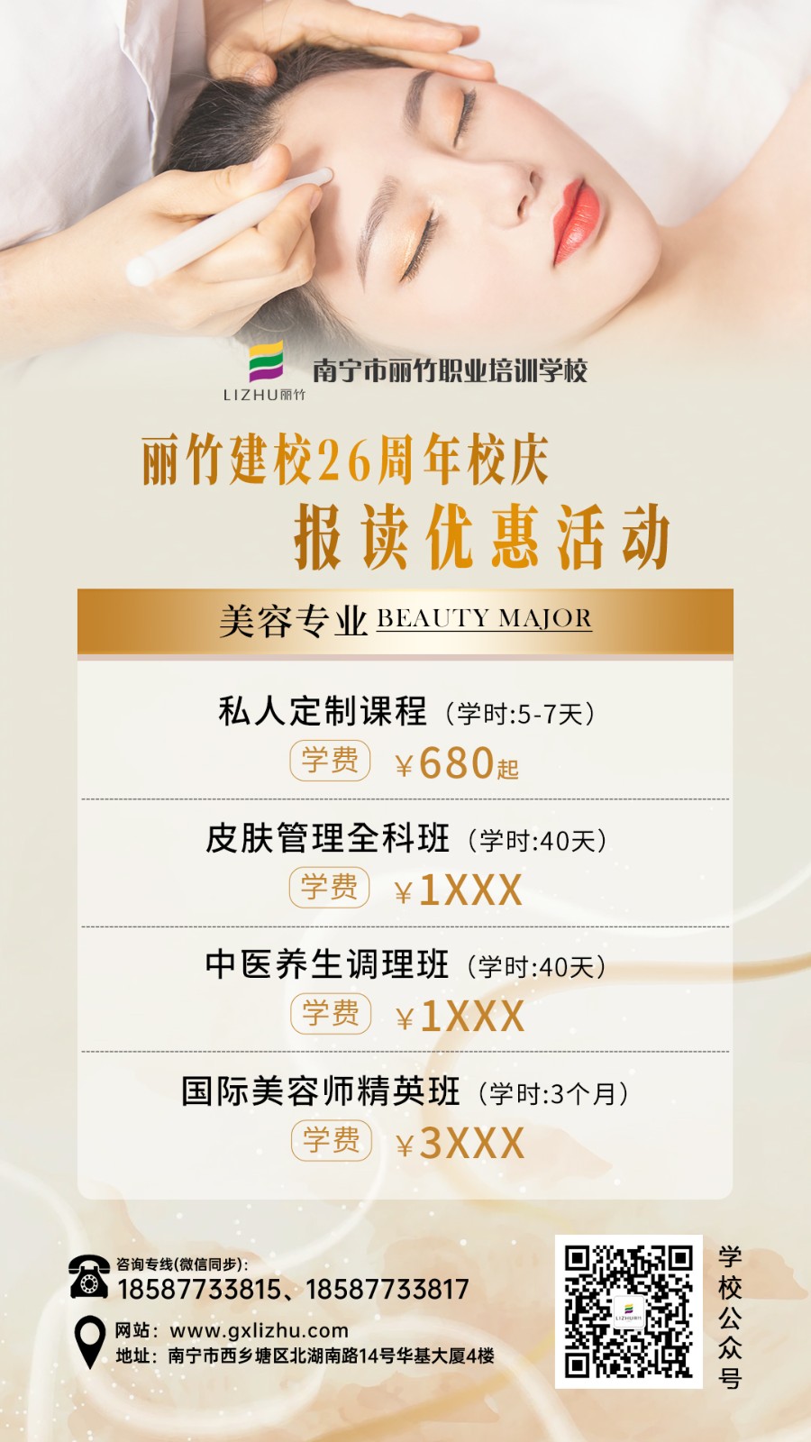 我們的身體內(nèi)部,是一個龐大的保護(hù)系統(tǒng),只有好好調(diào)理和保護(hù),才能擁有一個健康的體魄。而美容技術(shù),則能在日常生活中發(fā)揮強(qiáng)大的保健作用。因此,無論你是想就業(yè)還是創(chuàng)業(yè),在廣西美容行業(yè)發(fā)展前景很大,歡迎你到廣西美容正規(guī)培訓(xùn)去學(xué)習(xí)專業(yè)美容技能。