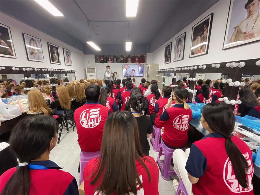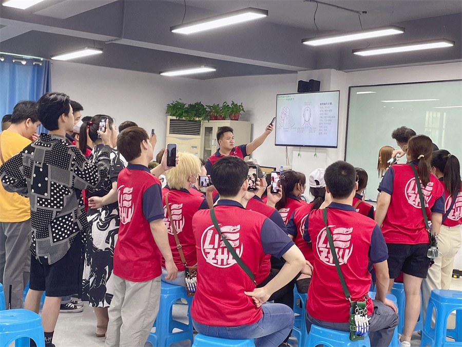 南寧化妝造型編扎發(fā)培訓(xùn)班-學(xué)員觀看老師手法示范