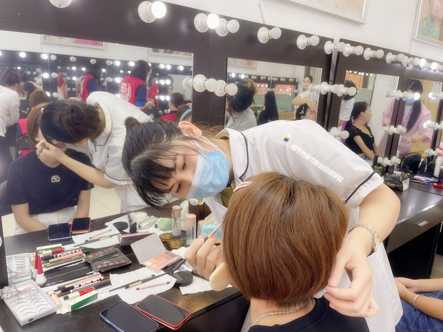 美容師形象要求、美容師儀容儀表的規(guī)范要求:想要成為一名合格的美容師,除了要有專業(yè)的技能外,對于美容師的面部妝容也有一定的標(biāo)準(zhǔn)。而在南寧美容師培訓(xùn)學(xué)校(麗竹美容師培訓(xùn))的課堂上,同學(xué)們就根據(jù)老師給出的美容師妝容形象標(biāo)準(zhǔn)進(jìn)行手法練習(xí),和我們一起去看看吧!