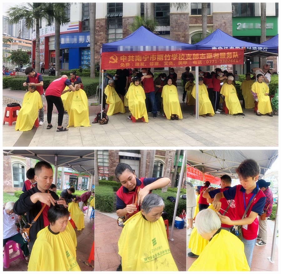 2023年10月23日,正值重陽節(jié)當天,南寧美發(fā)正規(guī)學校-麗竹學校組織美發(fā)班的學員成立南寧美發(fā)志愿者服務(wù)隊,走進奧園社區(qū),憑借專業(yè)特色與實力,為這里的老人們免費提供理發(fā)服務(wù),為他們送去重陽節(jié)的祝福。