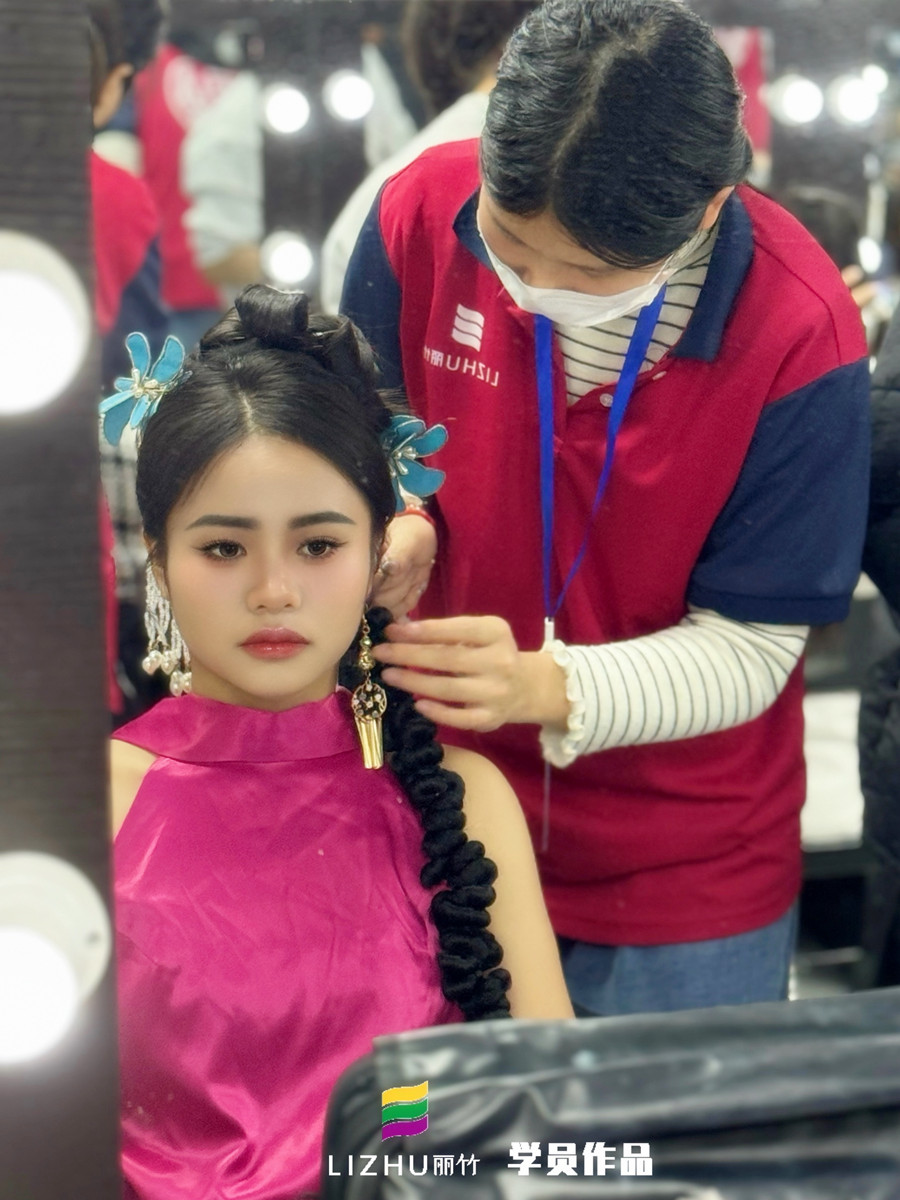 雖然晨袍沒有婚紗還有禮服那般隆重華麗,但即便是簡潔的剪裁服飾,在配上極具新中式韻味的得發(fā)型設(shè)計于妝容,一樣可以大放異彩。而麗竹化妝造型進修班的同學(xué)們現(xiàn)在正在老師的指導(dǎo)下進行晨袍新娘造型的打造,讓我們一起去看看吧!