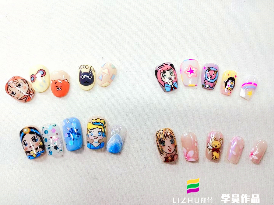 廣西美甲培訓(xùn)(麗竹美甲培訓(xùn))學(xué)員作品---卡通漫畫(huà)美甲