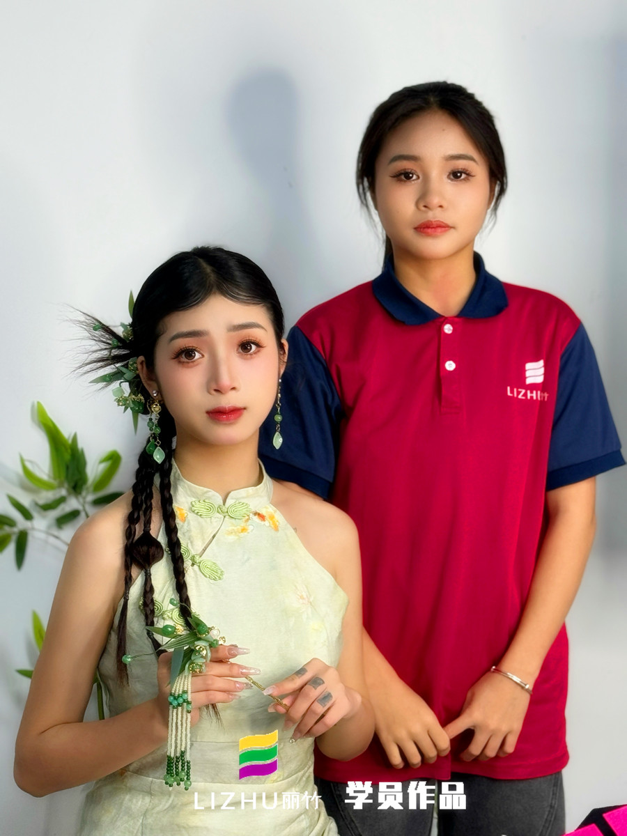 南寧化妝影樓造型、南寧化妝影樓培訓(xùn)(麗竹彩妝寫真培訓(xùn))---新中式造型:新中式長(zhǎng)裙復(fù)古迷人,古風(fēng)盤發(fā)戴翠綠珠釵,綠色搭配竹葉的設(shè)計(jì),給人一種淡雅的感覺。如果你想學(xué)個(gè)人寫真藝術(shù)照造型,或是想在南寧培訓(xùn)寫真化妝,學(xué)更加全面的化妝技術(shù),建議你可以趁著麗竹學(xué)校正在進(jìn)行春季招生優(yōu)惠活動(dòng),趕緊聯(lián)系我們報(bào)名吧!
