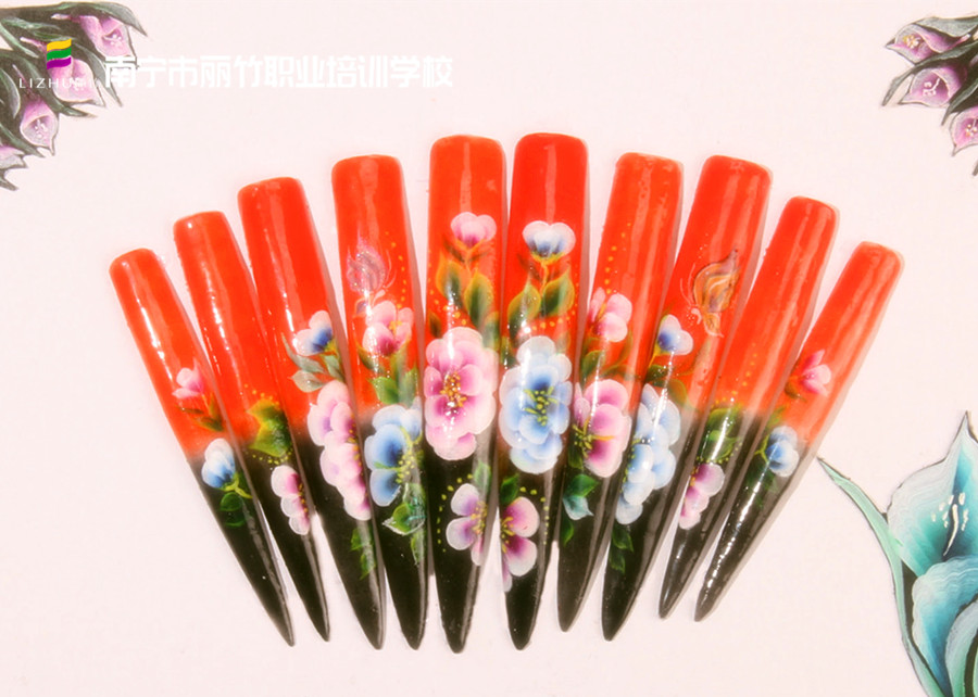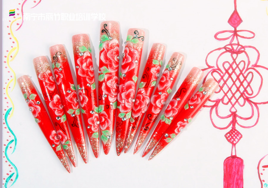 下面,就請和我們一起去看看南寧美甲職業(yè)技術學校(麗竹美甲職業(yè)技術學校)的同學們?yōu)橛有履昀L制的新年美甲排比彩繪作品吧!