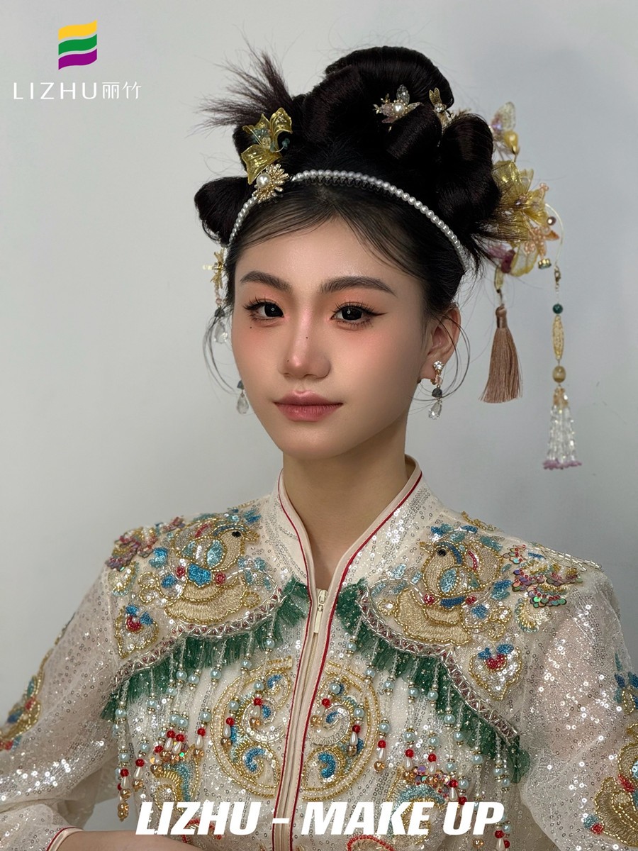 廣西新娘妝容造型培訓(xùn)(麗竹化妝培訓(xùn)學(xué)校)作品---新中式秀禾造型(一)