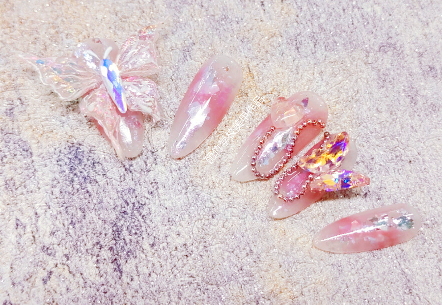 蝴蝶飾品美甲,廣西美甲技術(shù)職業(yè)作品分享