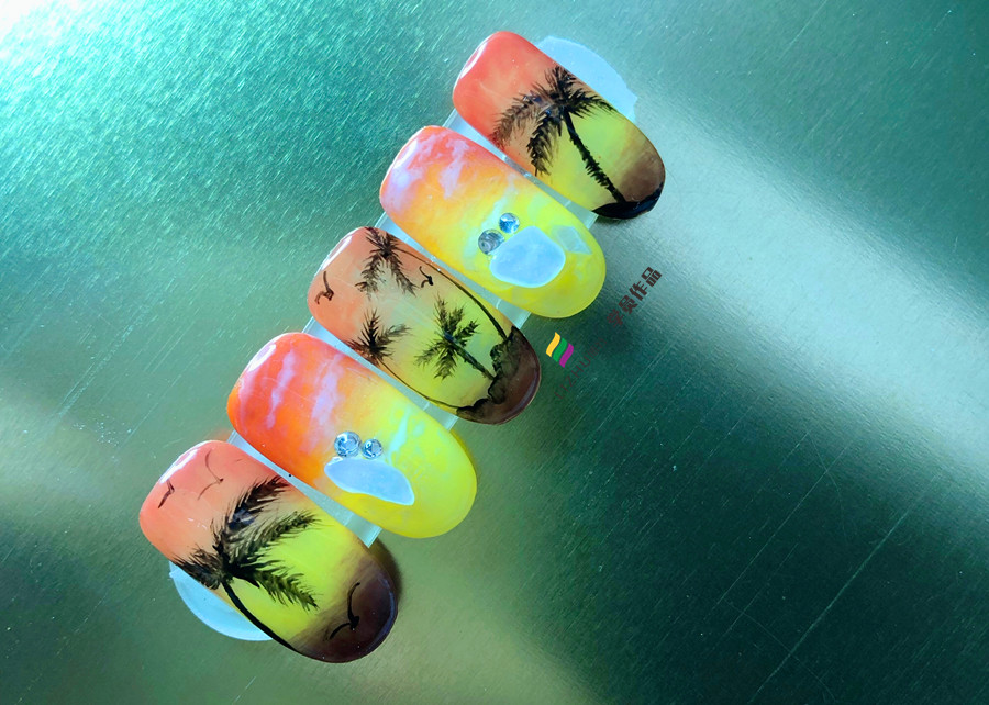夏日椰樹美甲,零經(jīng)驗(yàn)在廣西學(xué)美甲學(xué)員作品