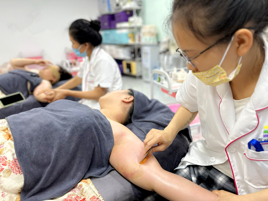 刮痧時,應(yīng)避風(fēng)和注意保暖治療刮痧時應(yīng)避風(fēng),注意保暖。室溫較低時應(yīng)盡量減少暴露部位,夏季高溫時不可在電扇處或有對流風(fēng)處刮痧。刮痧后飲熱水一杯,能促進(jìn)新陳代謝,加速代謝產(chǎn)物的排出。刮痧后,建議在3-4個小時后在沐浴。