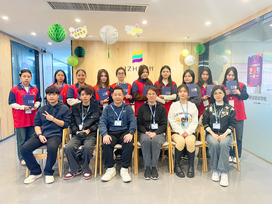 美甲畢業(yè)學(xué)員與部分領(lǐng)導(dǎo)老師合影