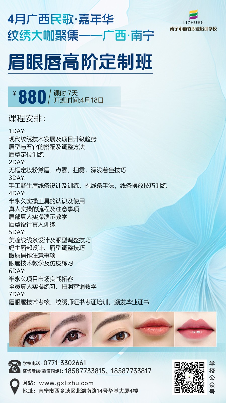 眉眼唇日益成熟的技術(shù),讓越來越多的人愿意去進行項目操作,而現(xiàn)在廣西紋繡行業(yè)市場上出現(xiàn)的紋繡師供不應(yīng)求的缺口,也讓很多人看到眉眼唇技術(shù)背后隱藏的巨大流量。所以,如果你也想從中分得一杯羹,廣西紋繡學校推薦你可以到麗竹學校紋繡培訓去參觀,試聽,了解課程,滿意之后在報名。