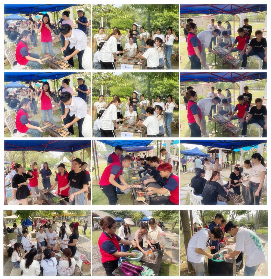 游戲結(jié)束后,終于到了同學們期待已久的“燒烤盛宴”。大家配合默契,清洗食物,涮調(diào)料的,烤肉的等等,各個步驟有條不紊地展開。隨著縷縷青煙縈繞上空,大家一邊燒烤一邊聊天,到處都飄散著歡聲笑語。